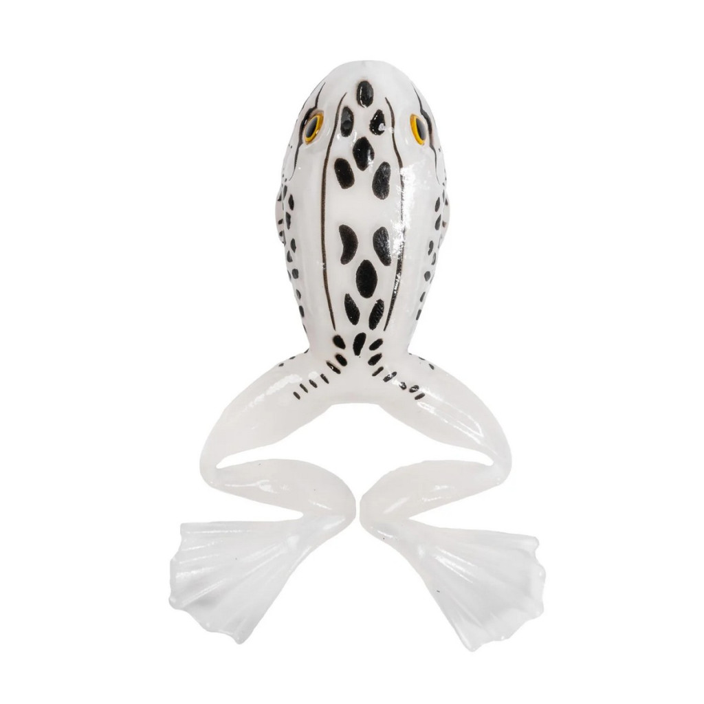 The package contains 4 pieces of 5 centimeter imitations, made of soft, yet massive plastic. The White-Albino color combination provides excellent visibility particularly in clear water or overcast weather, as the light tones create a sharp contrast with the environment. The size and shape of the lure accurately replicate the profile of real amphibians, and the special material composition ensures the necessary buoyancy and flexibility. The hollow body design is critical for successful fishing, as the material easily compresses upon a strike, freeing the hook for a sure hookset.