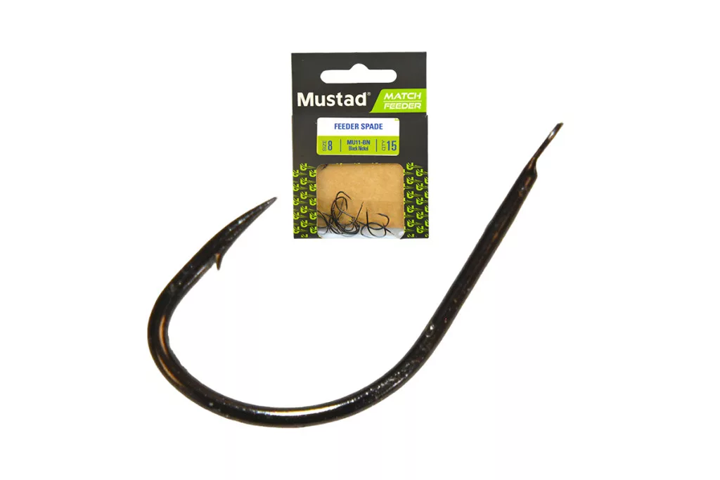 Zawartość opakowania: Mustad Match Feeder Feeder Spade 10 Płaski, Haczyk z zadziorem 15szt.