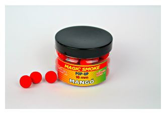 Motaba Carp Magic Smoke Pop-up - 16mm - Motaba Magic Smoke Pop-up to pływająca i rozpuszczalna przynęta, której wyporność została ustawiona tak, aby podnieść haczyk o rozmiarze 6 na całej długości przyponu. Całą serię charakteryzuje intensywny, ale przyjemny aromat, w towarzystwie niezwykle wyrazistych kolorów.