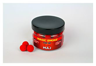 Motaba Carp Magic Smoke Pop-up - 16mm - Motaba Magic Smoke Pop-up to pływająca i rozpuszczalna przynęta, której wyporność została ustawiona tak, aby podnieść haczyk o rozmiarze 6 na całej długości przyponu. Całą serię charakteryzuje intensywny, ale przyjemny aromat, w towarzystwie niezwykle wyrazistych kolorów.