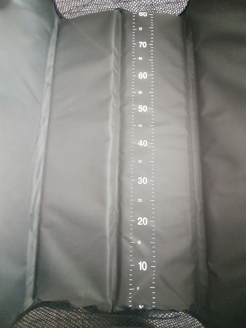 Na macie znajduje się skala pomiarowa do 80cm, dzięki której łatwo zmierzymy i sfotografujemy złowione ryby.