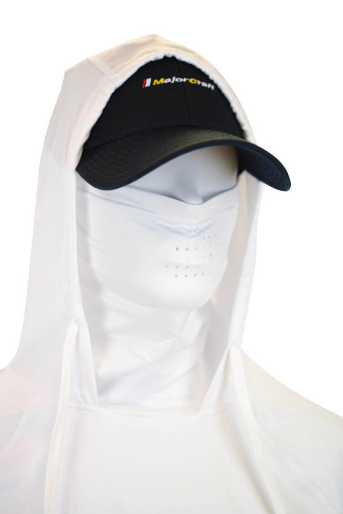 Bluza z kapturem Major Craft Sun Protection Hoodie to techniczna odzież wierzchnia wykonana z lekkiego, elastycznego i oddychającego materiału, jednym słowem najwyższej jakości. Bluza z długim rękawem i kapturem o doskonałej elastyczności i sylwetce, która nie traci kształtu nawet po długotrwałym użytkowaniu. Wykonana z 85% poliestru i 15% elastycznego Spandexu. Jest to odpowiedni wybór na słoneczną pogodę, ponieważ chroni tułów, szyję i ramiona przed promieniami UV. Oprócz oceny UV +50 i ochrony przed szkodliwym promieniowaniem słonecznym, jest wygodna i lekka, reguluje nawodnienie i szybko wchłania wilgoć. Materiał po bokach i pod rękawami jest siateczkowy, aby umożliwić przepływ powietrza i utrzymać chłód. Major Craft skupił się nie tylko na praktyczności odzieży, ale także na estetyce, łącząc czarne i szare odcienie kamuflażu, podczas gdy czysto biała wersja została stworzona na bardzo gorące dni.