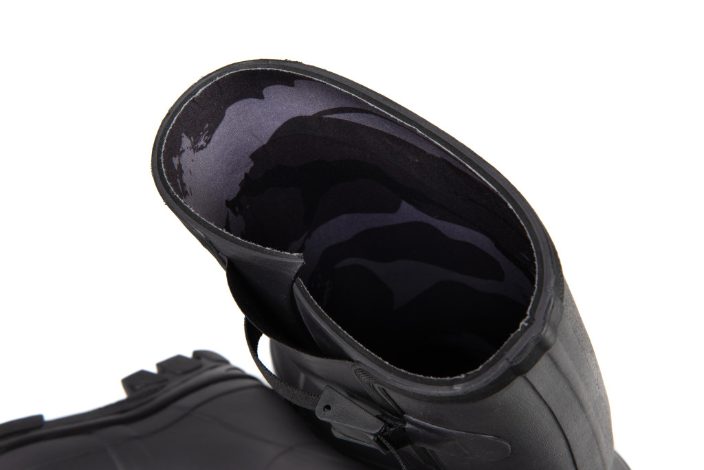 Zewnętrzna warstwa kaloszy wykonana jest z wytrzymałej, a jednocześnie elastycznej gumy syntetycznej, która jest odporna na obciążenia mechaniczne, nie ograniczając jednocześnie ruchów. Wnętrze buta wyposażone jest w izolację z neoprenu o grubości 3 mm, która posiada doskonałe właściwości zatrzymywania ciepła, dzięki czemu stopa pozostaje ciepła nawet podczas najzimniejszych wypraw wędkarskich. Wyściełana podszewka z wzorem Fox Rage Camo jest nie tylko estetyczna, ale także zapewnia dodatkowy komfort.