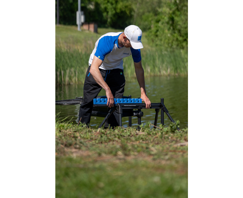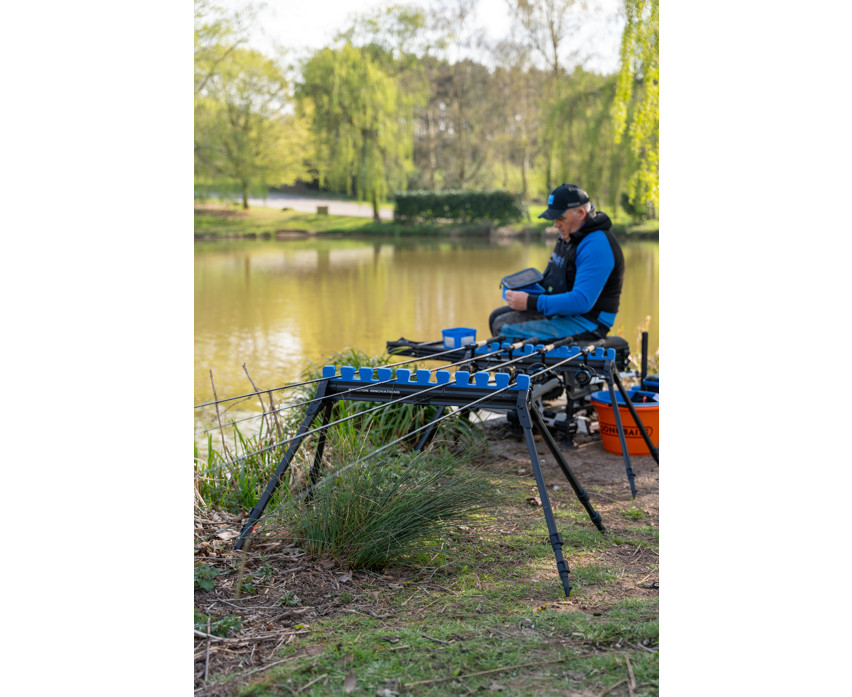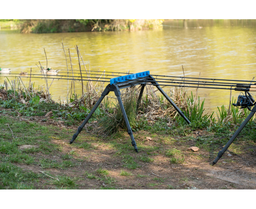 Dzięki czterem teleskopowym nogom uchwyt stabilnie stoi w każdym terenie, niezależnie od tego, czy jest nierówny, czy miękki. Przesuwana wkładka piankowa chroni wędki przed uderzeniami, dzięki czemu będzie niezawodnym towarzyszem nawet na zawodach. 8-sekcyjna konstrukcja pozwala na jednoczesne umieszczenie w nim do 10 top setów, co czyni go idealnym dla wędkarzy sportowych.