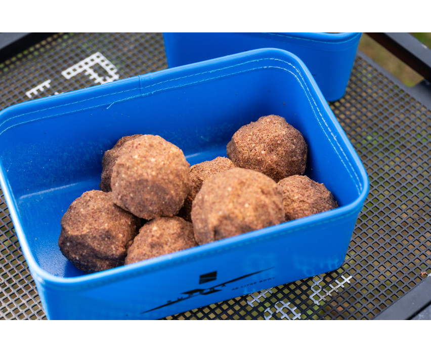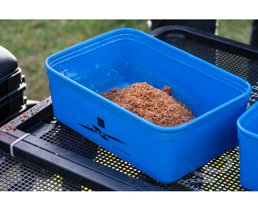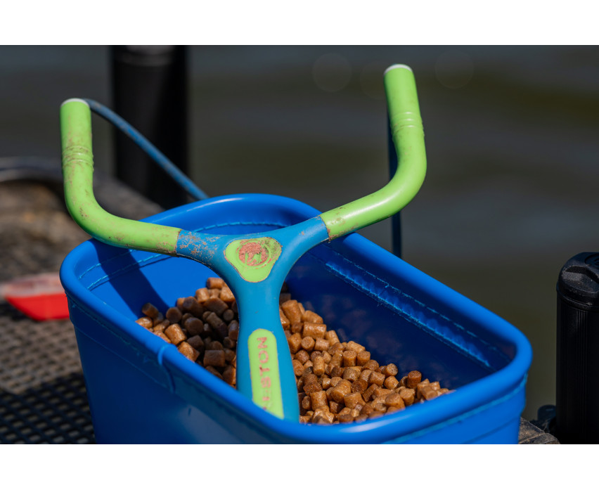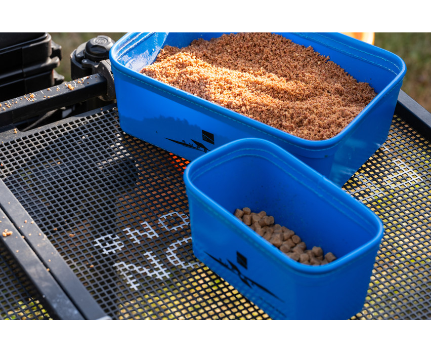 Az edény anyaga masszív műanyag, amely ellenáll a külső hatásoknak, kopásnak, és könnyen tisztítható. A lekerekített sarkok és merev perem kialakítása nem csak esztétikus, hanem funkcionális is: megkönnyíti a tisztítást és megakadályozza, hogy a csali vagy etetőanyag a peremhez ragadjon, így higiénikus környezetet biztosít a csalizáshoz.