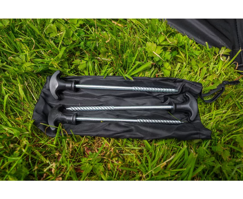 » Mocny aluminiowy szpikulec zapewnia stabilne mocowanie w każdym gruncie.