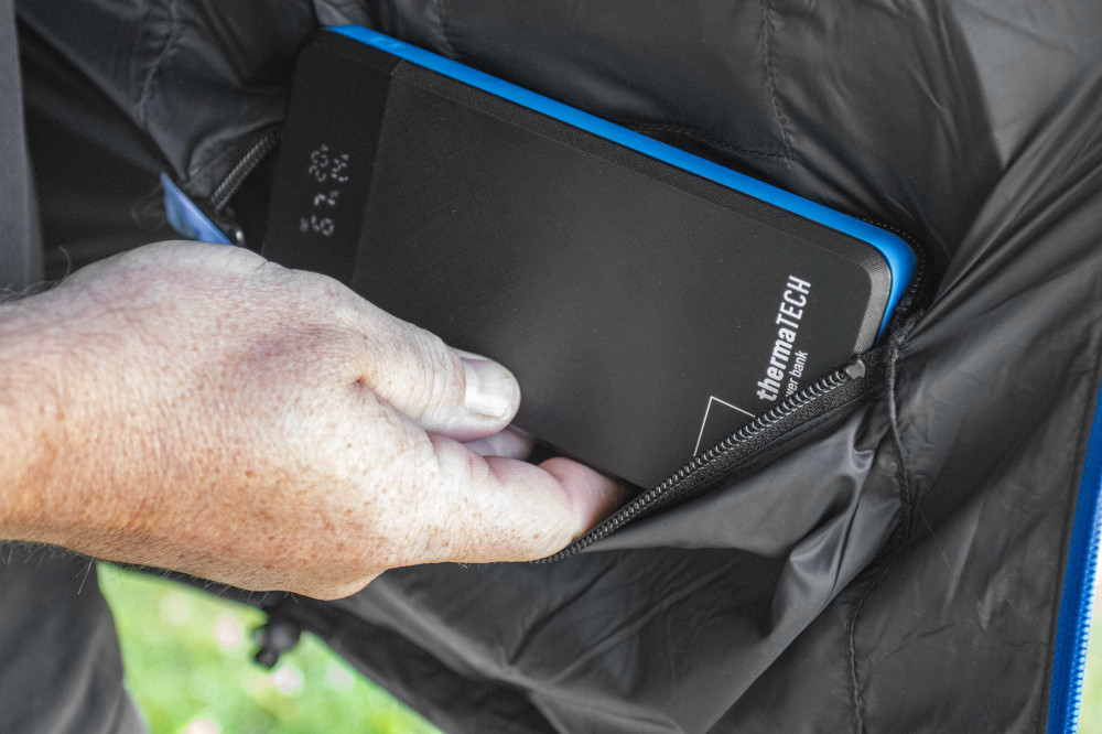 The Thermatech 20000 mAh Power Bank is designed to work with high-power devices, such as the Thermatech heated Softshell jacket, which requires 20 V/2A USB-C output, but can also be happily used for lower-power batteries with the dual USB output.