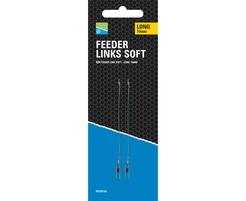 Preston Feeder Links Soft Long 75mm to dłuższy, miękki pleciony antysplątaniowy feeder, zaprojektowany specjalnie w celu zapewnienia precyzyjnego sygnalizowania brań i bezproblemowego zestawu. Idealny wybór dla wędkarzy poszukujących większej czułości w łowieniu delikatnymi metodami, zwłaszcza przy dalszych rzutach.