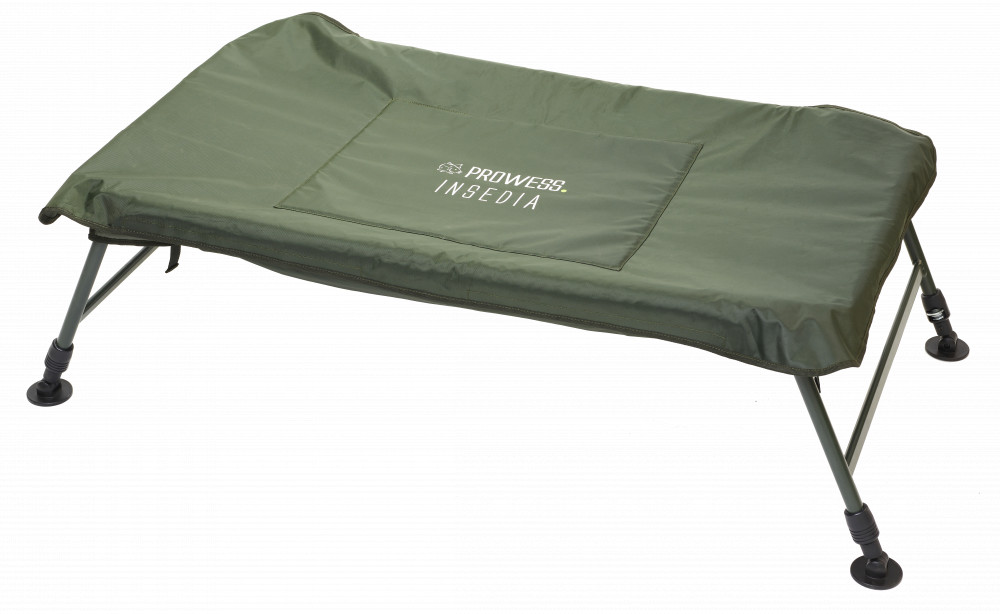 A Prowess INSEDIA egy csúcskategóriás pontybölcső, amely rendkívül erős és tartós anyagokból készült. A pontybölcsőn található vízkivezetések lehetővé teszik a hal bőséges nedvesítését anélkül, hogy az a hal mozgása során kifröccsennének. Nagyon merev, ennek ellenére könnyen összecsukható, úgymond börönd jellegűre. A négy darab állítható láb lehetővé teszi, hogy bármilyen terepviszonyon stabilan felállítható. Ennek a nagyszerű pontybölcsőnek az egyik plusz tulajdonsága az a takaró ponyva, amely megfedi a 'fogást', miközben máshova fordítjuk a figyelmünket, erre jó példa a nedvesítéshez szükségs víz elhozatala.
