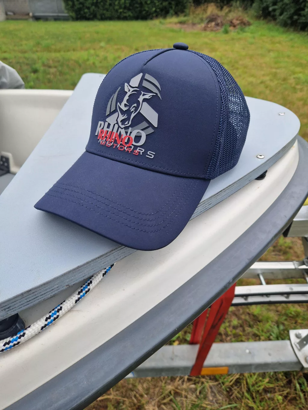 Rhino Trucker Cap to stylowa i praktyczna czapka z daszkiem, zaprojektowana specjalnie dla tych, którzy spędzają dużo czasu na wodzie, w łodzi lub na świeżym powietrzu. Głęboki, granatowy panel przedni czapki emanuje sportowym, marynarskim klimatem, natomiast siateczkowa część z tyłu zapewnia doskonałą wentylację nawet w najcieplejsze dni. Gumowy napis Rhino Motors w 3D umieszczony z przodu czapki nadaje jej charakterystyczny wygląd i jednoznacznie wskazuje na zaangażowanie w markę.