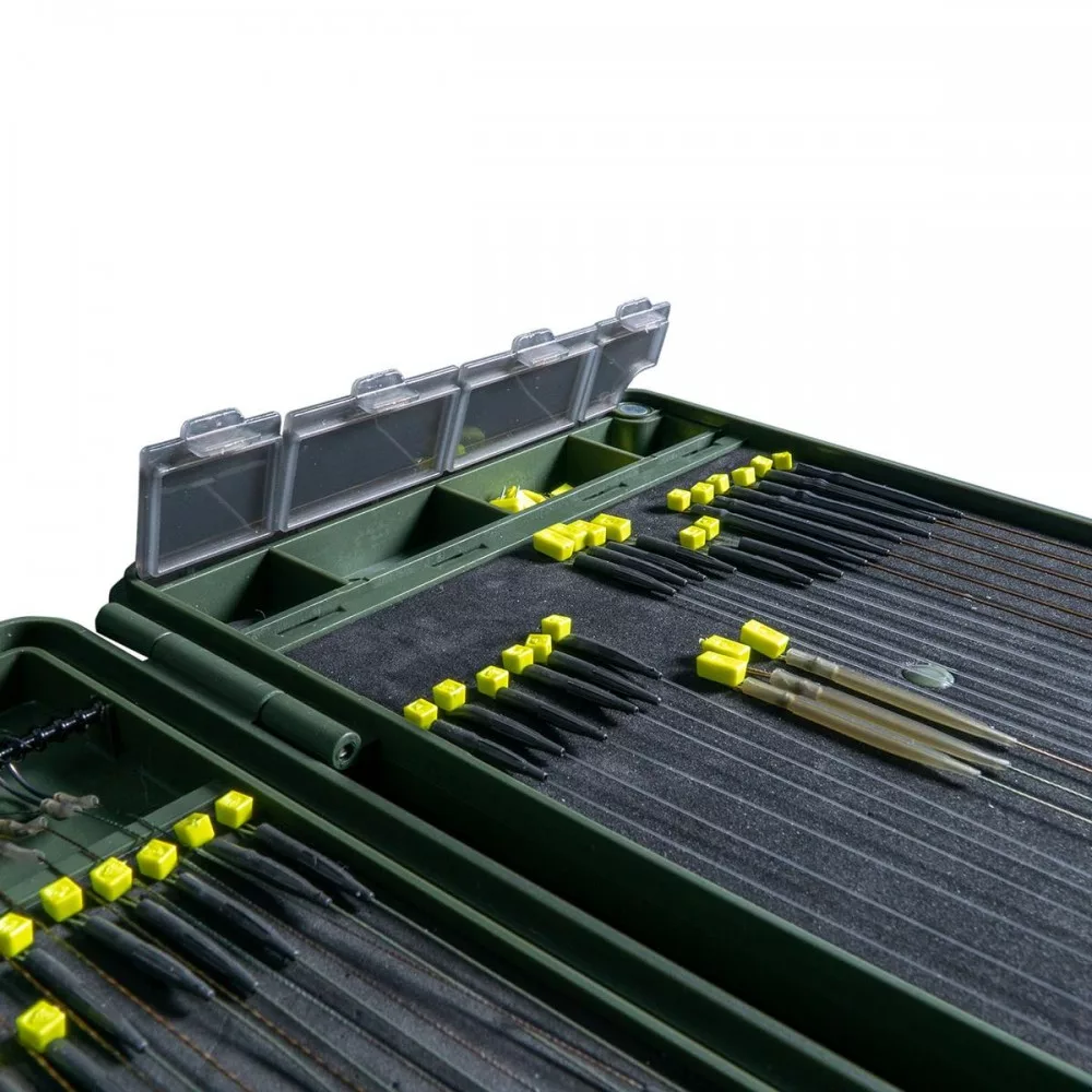 Ponieważ przypon haczykowy jest jedną z najważniejszych części sprzętu wędkarskiego, ma sens tylko wtedy, gdy przechowujesz go odpowiednio bezpiecznie. Armory Rig Box to właśnie umożliwia. Chociaż jest lekki i kompaktowy, Armory Rig Box może przechowywać ponad 100 zestawów jednocześnie, co oznacza, że zawsze jesteś gotowy na wszystko.