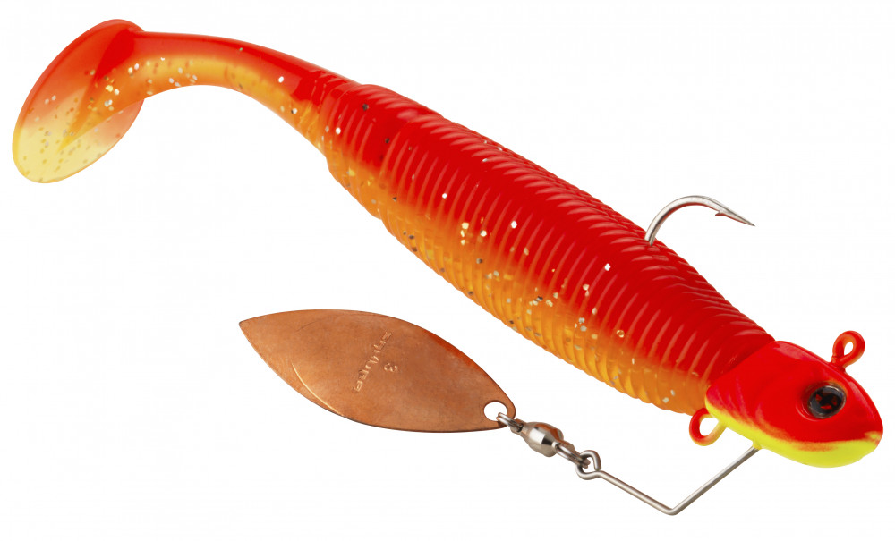 A SPINHEAD tovább fokozza a plasztik csalink hatékonyságát ezzel is hozzájárulva a sikerességhez. A jigfejnek a formáját úgy tervezték, hogy kelló stabilitást biztosítson és elősegítse plasztikcsalik mozgását és semmi féle módon ne akadályozza azt! A SPINHEAD jigfej alatt van egy további fűzőlyuk, amely lehetővé teszi a nagyobb méretű gumihalak használatát, ezzel együtt a 'talpalás' lehetőségét! A végére maradt a csattanó, a SPINHEAD jig fejen is található egy spinner, ami alul helyezkedik el a szokásos spinnerbaitekkel szemben. A szokásostól eltérő pozícó új dimenziót nyit, amelyre a tesztek során a ragadozó halak igen jól reagáltak! Természetesen a fogós színvariációkból itt sincs hiány, továbbá a SPINHEAD is megkapta a legendás SAKUEYES szemeket, ami már számos műcsali esetében bizonyított.