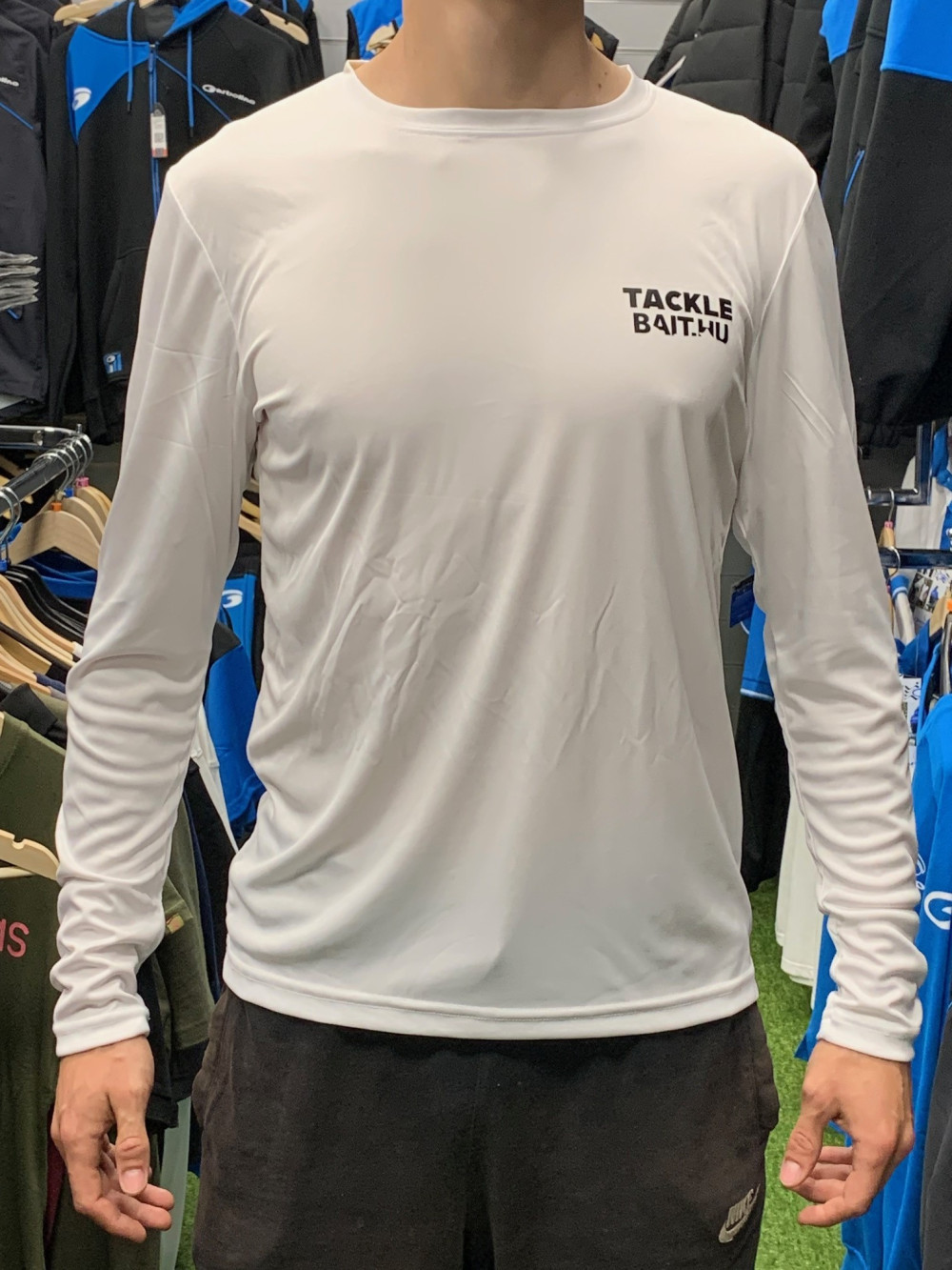 Koszulka z długim rękawem wykonana z szybkoschnącego materiału. Na piersi dyskretny napis TackleBait, na plecach większe, nadrukowane logo. Idealna do uprawiania sportu i rekreacji. Dostępna w różnych rozmiarach, unisex.